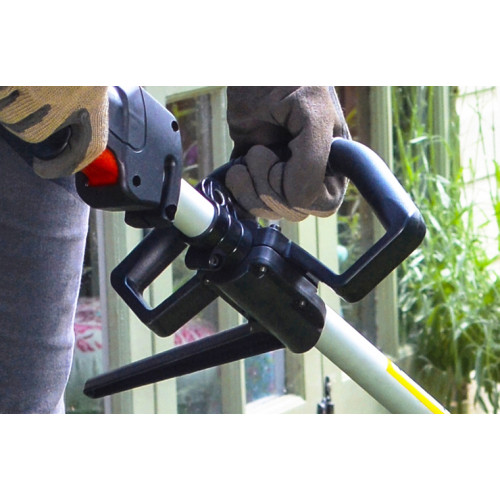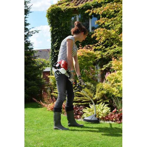 - Petrol-powered grass trimmer suitable for general garden maintenance