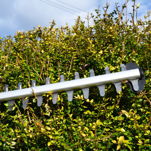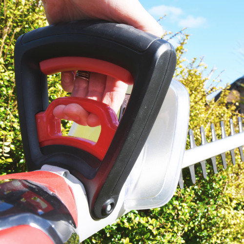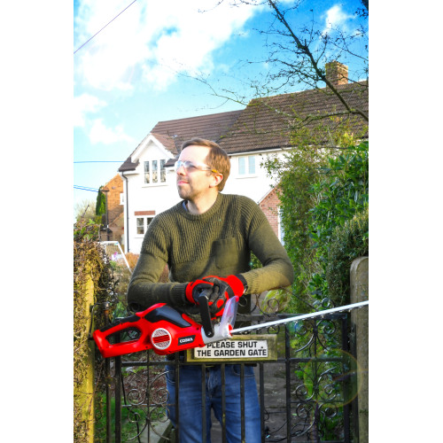 The Cobra COHT550E electric hedgetrimmer is designed for efficient trimming and shaping of domestic hedges and bushes. Its double-sided blade helps you cut smoothly in both directions for a cleaner finish.