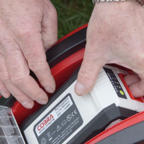 Tags: Cobra, CORM4140V, cordless lawnmower, rear roller lawnmower, battery mower, 40cm mower, garden mower, grass collector, lawn care