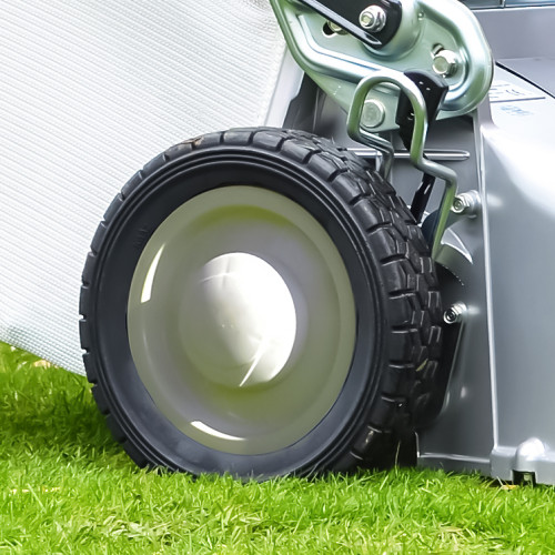 • Four-wheel layout supports even cutting on typical garden terrain
